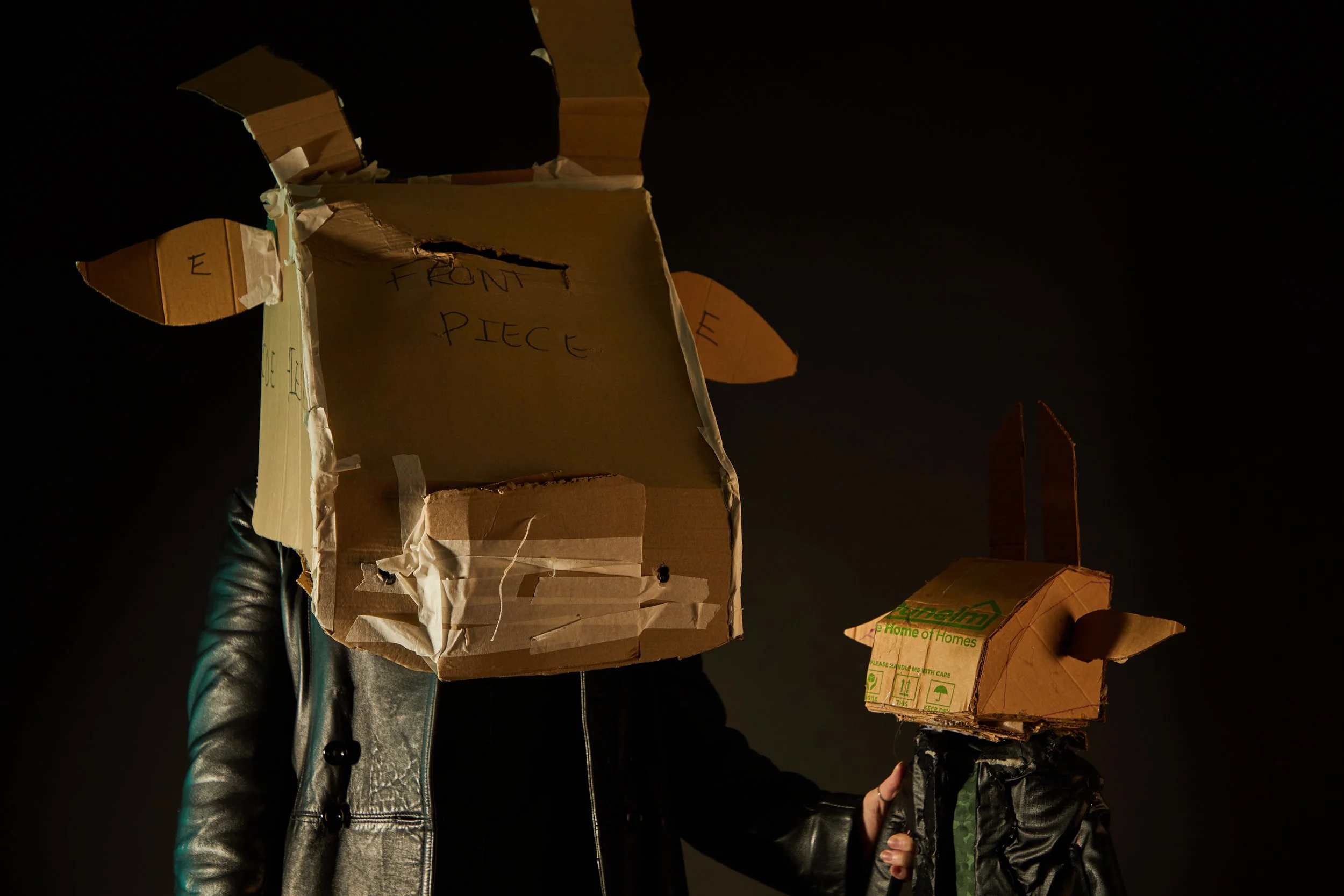 An exploration into maternal relationships told through the journey of a mother and child. The characters are animal hybrids, with the cow mask referencing the cuts made by butchers. The work takes inspiration from Francisco Goya’s, ‘Saturn Devouring his son’ and touches on themes of greek mythology with the Cretan Bull and the Minotaur.